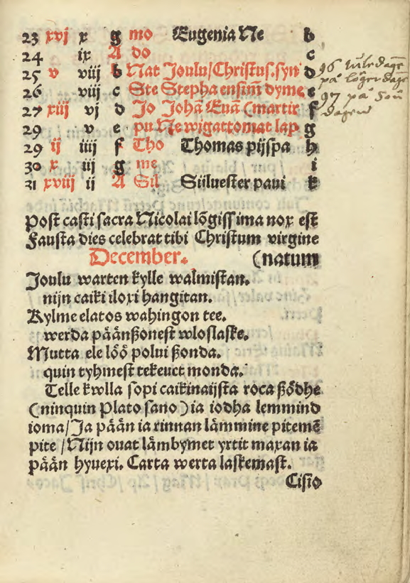 Mikael Agricola antaa Rucouskiriansa (1544) kalenteriosassa terveysohjeita joka kuukaudelle. Joulukuusta hän sanailee näin: